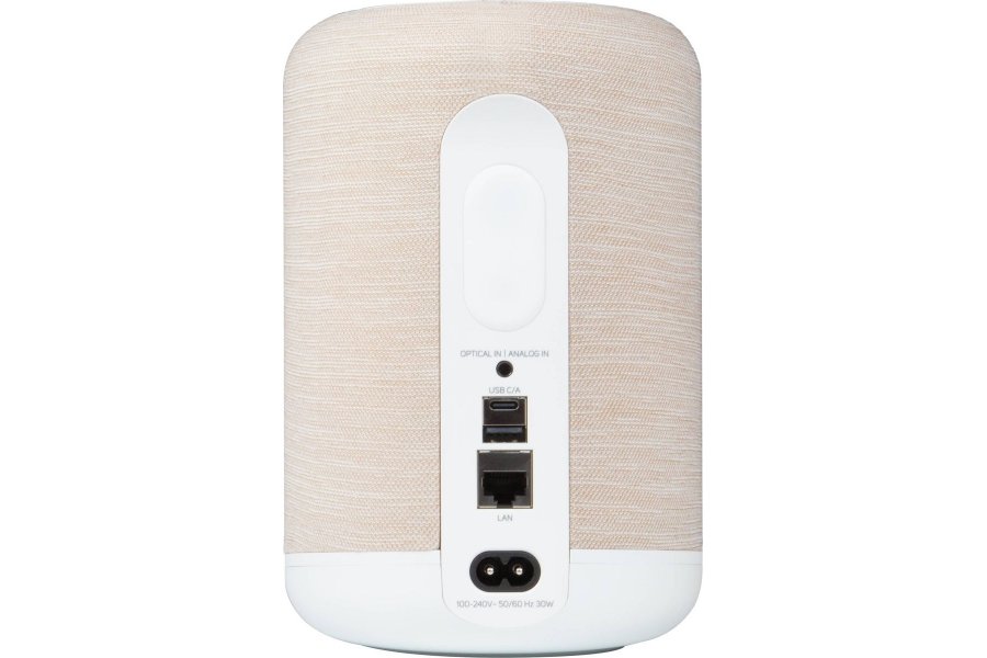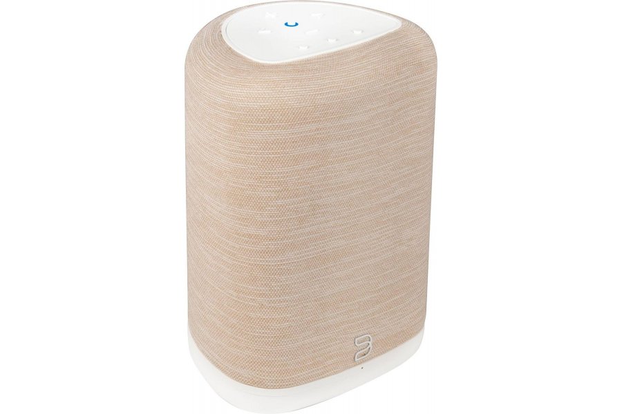 Le design a été modernisé pour s'intégrer encore plus naturellement dans les intérieurs contemporains. Déclinée en trois finitions mates élégantes (Noir Charcoal, Blanc Pebble Grey et Beige Tan), elle arbore un tissu acoustique raffiné et une interface tactile repensée sur le dessus. Les boutons de présélection (presets) vous permettent de lancer vos playlists ou radios internet favorites d'un simple effleurement, sans avoir à sortir votre smartphone.
